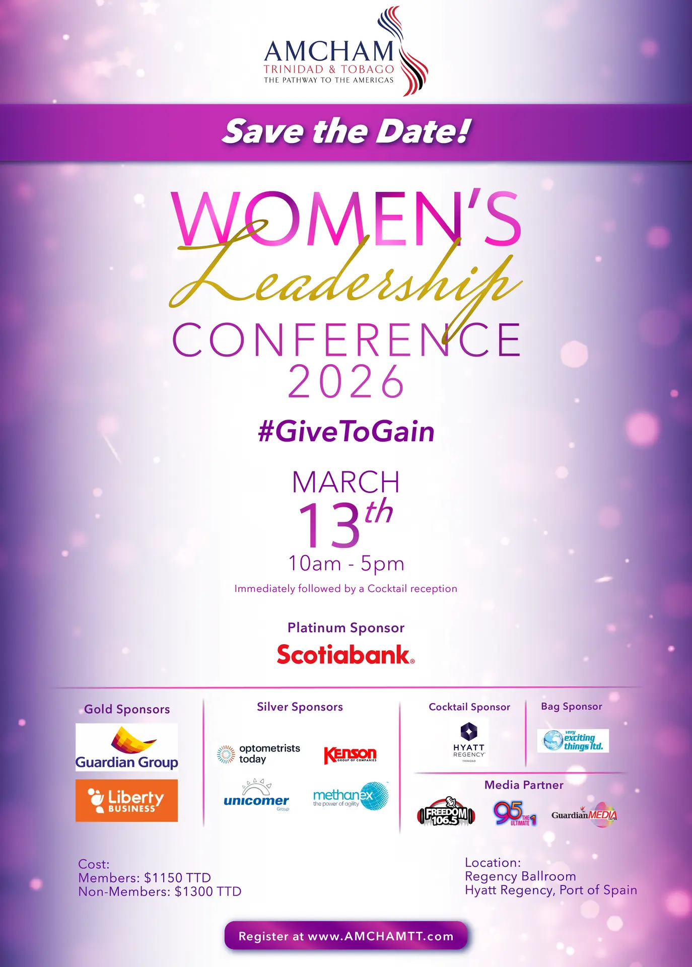 AMCHAM T&T's 12th Annual Women’s Leadership Conference returns on March 13th, 2026, at the Hyatt Regency Trinidad, bringing together influential voices, impactful dialogue, and powerful connections.
