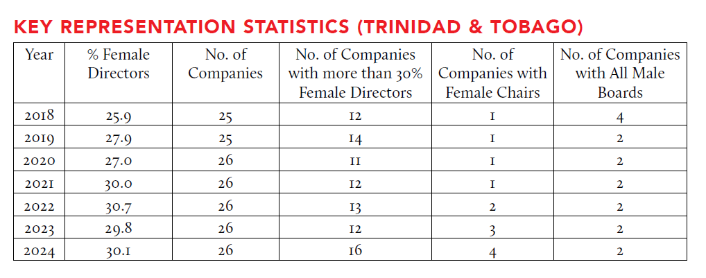 · In Trinidad and Tobago for 2024, 15 of 26 listed companies (58%) met or exceeded the 30% mark; 8 were at 40%+; 4 were at 50%+.